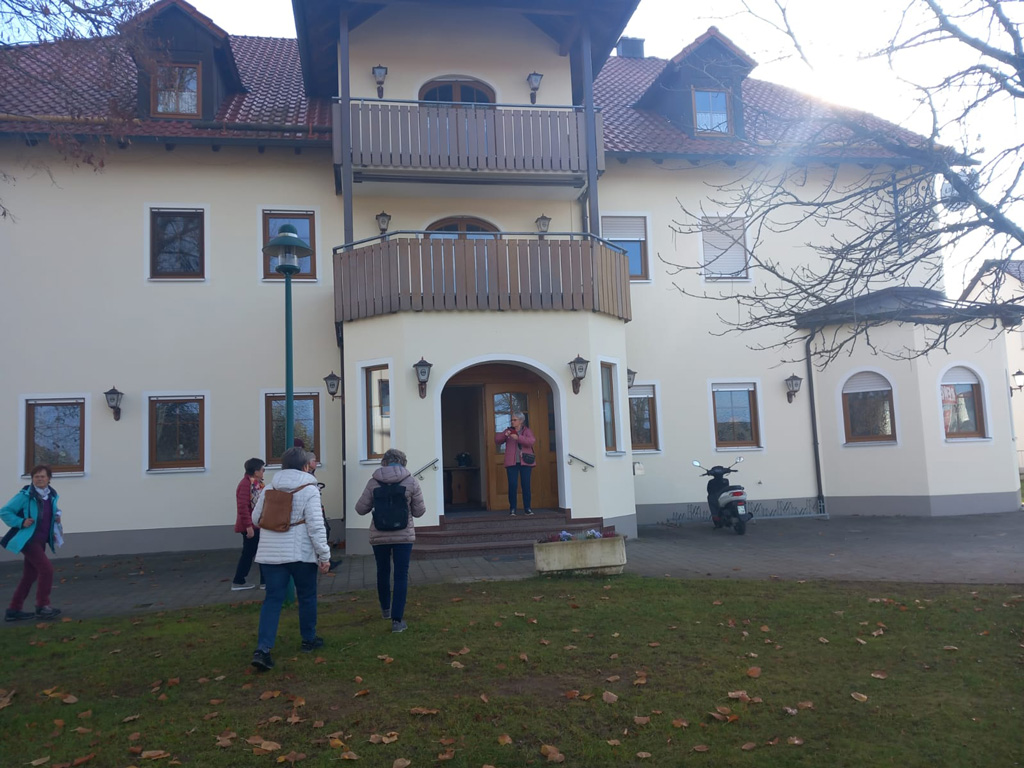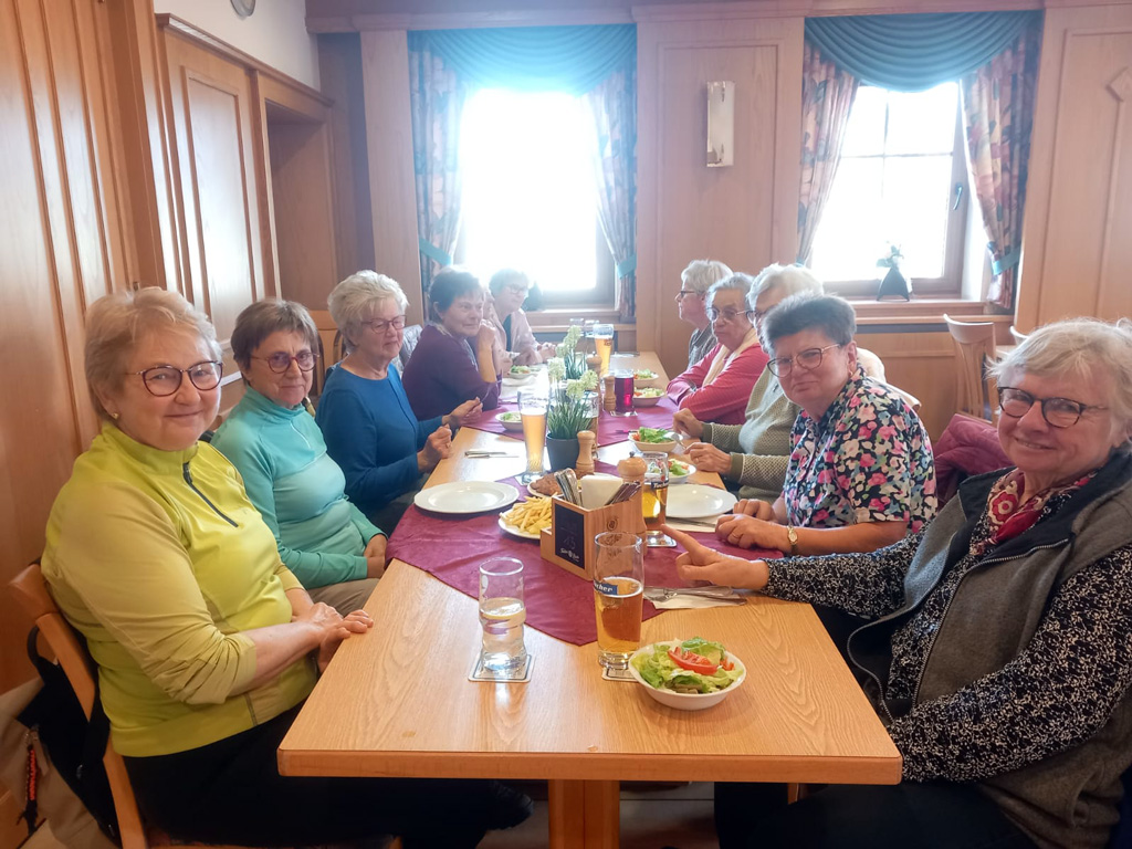 Noch einen halben Kilometer und schon hatten wir die ersten Häuser von Richtheim erreicht. Ein Blick auf die Uhr sagte uns, wir kommen viel zu früh ins Wirtshaus, und so beschlossen wir einen Abstecher nach Riebling zu gehen und uns von hinten (vorne 🤔) unserem Ziel zu nähern. Um 11.30 Uhr kamen wir im Wirtshaus an, wo schon Kathi W. auf uns wartete. Rein in die gute Stube und lecker Essen bestellt. Schnitzel, groß oder doch klein 🤔 Bratwürste gebraten oder sauer ❓️ immer diese Entscheidungen 😏 Katharina S. kam noch mit dem Auto nach und erhöhte die Gruppe auf 12 Personen.