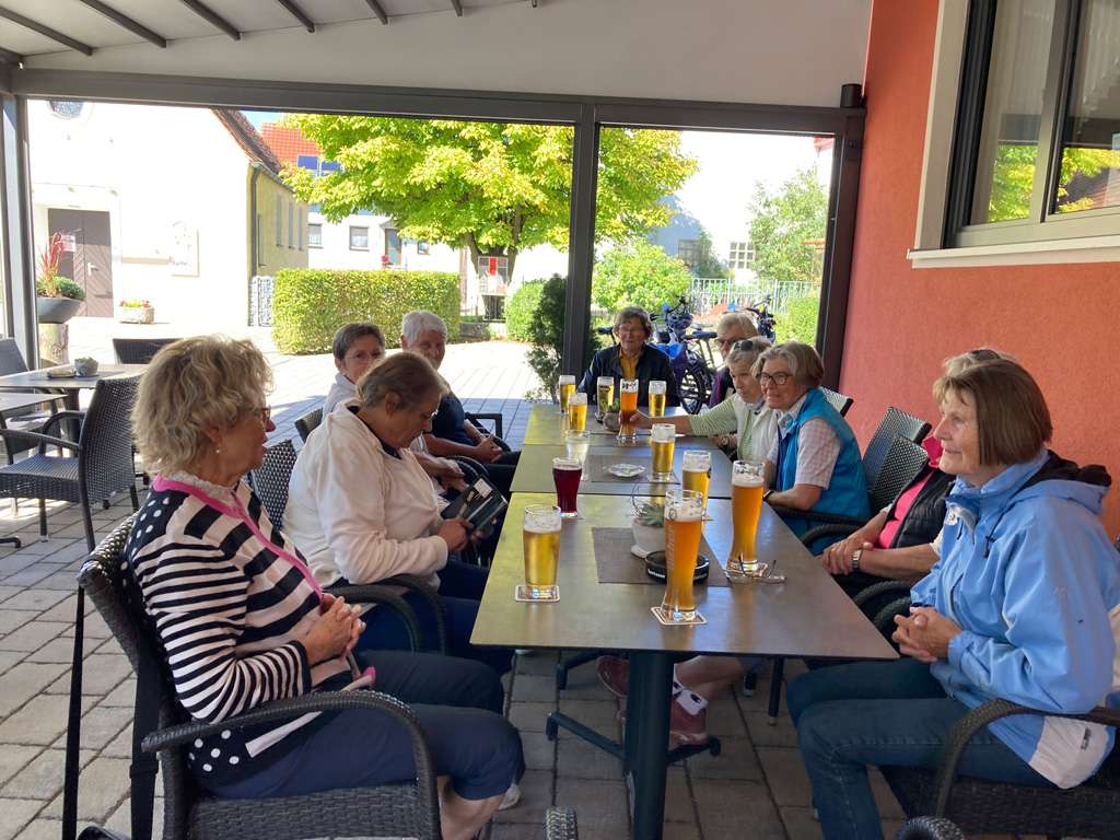 Von dort auf der ehemaligen Bahntrasse, ein Stück der Bockelbahn, nach Seligenporten. Nun nur noch ein paar Kilometer bis zum Ziel. Der Wirt Xaver Pfister erwartete uns bereits. Kaum angekommen läuteten in der Kapelle nebenan die Glocken. Nach alter Tradition sangen wir den "Engel des Herrn". Gestärkt mit einem guten Essen machten wir uns wieder auf den Heimweg, der uns über Möning, Wolfsricht, Berngau nach Neumarkt führte.