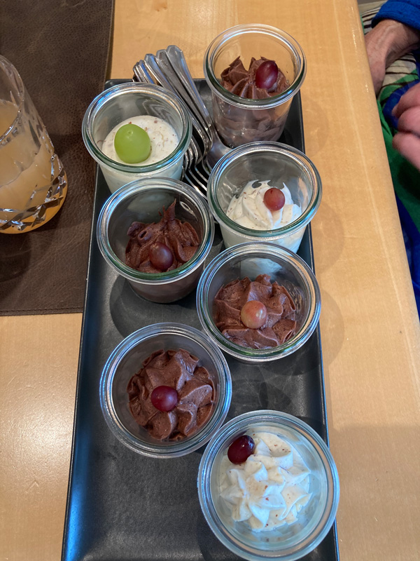 Ab da ging es ohne Schwierigkeiten und ohne Eisflächen Richtung Sammüller. Ab Labersricht kam auch die Sonne 🌞 durch und man konnte seinen Vitamin D Speicher wieder auffüllen. Pünktlich um 11.30 Uhr kamen wir beim Sammüller an. Der Tisch war schon gedeckt und so ging es ans bestellen. Von Goldbratwürsten, Fleischküchle und Geschnetzeltes war für jede was dabei. Das Highlight wurde vom Wirt, dem Josef, serviert und zwar gab es für Alle eine Nachspeise im Glas.