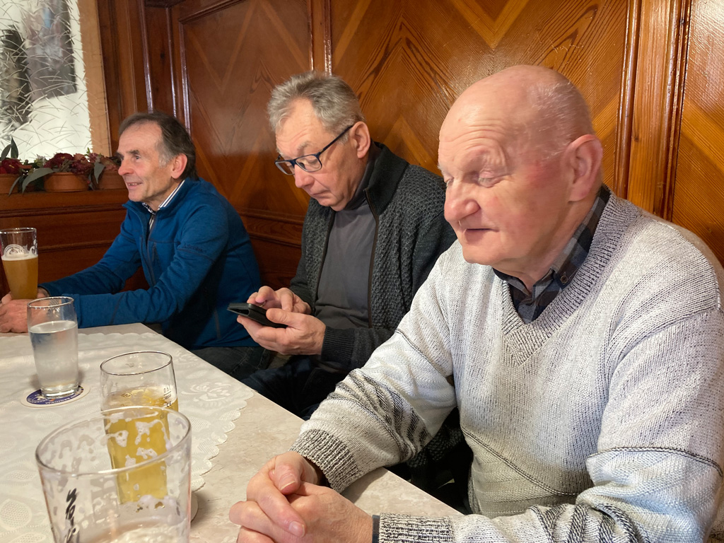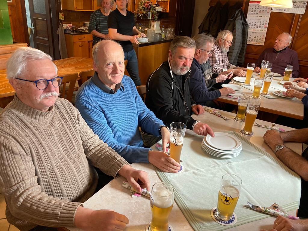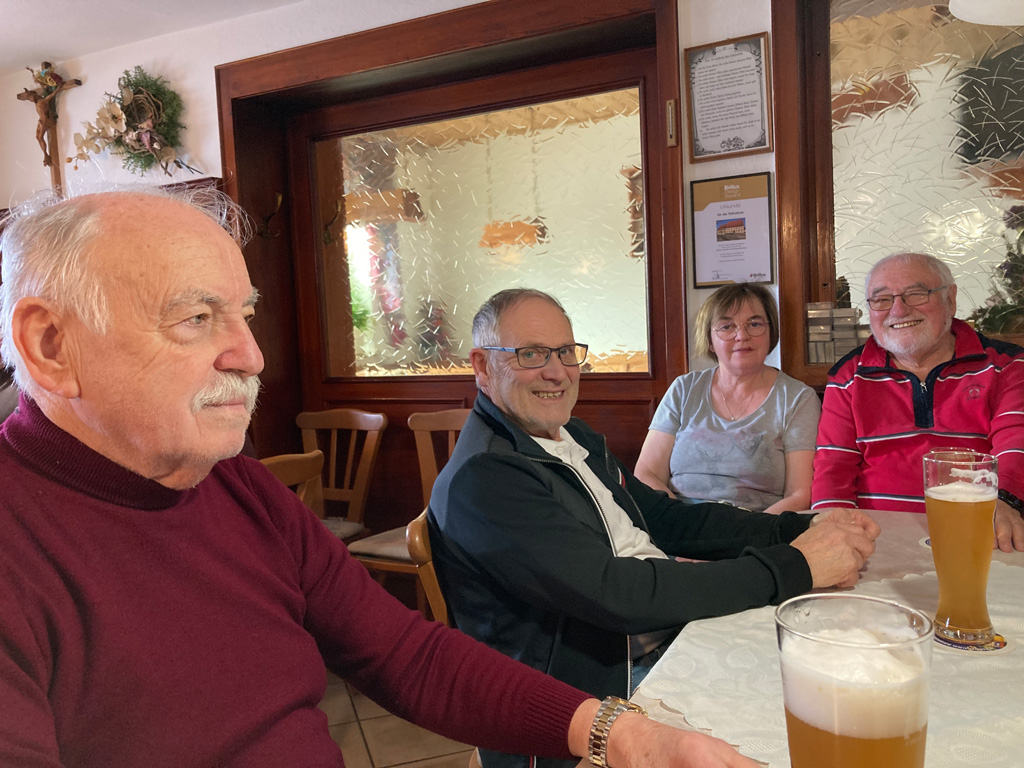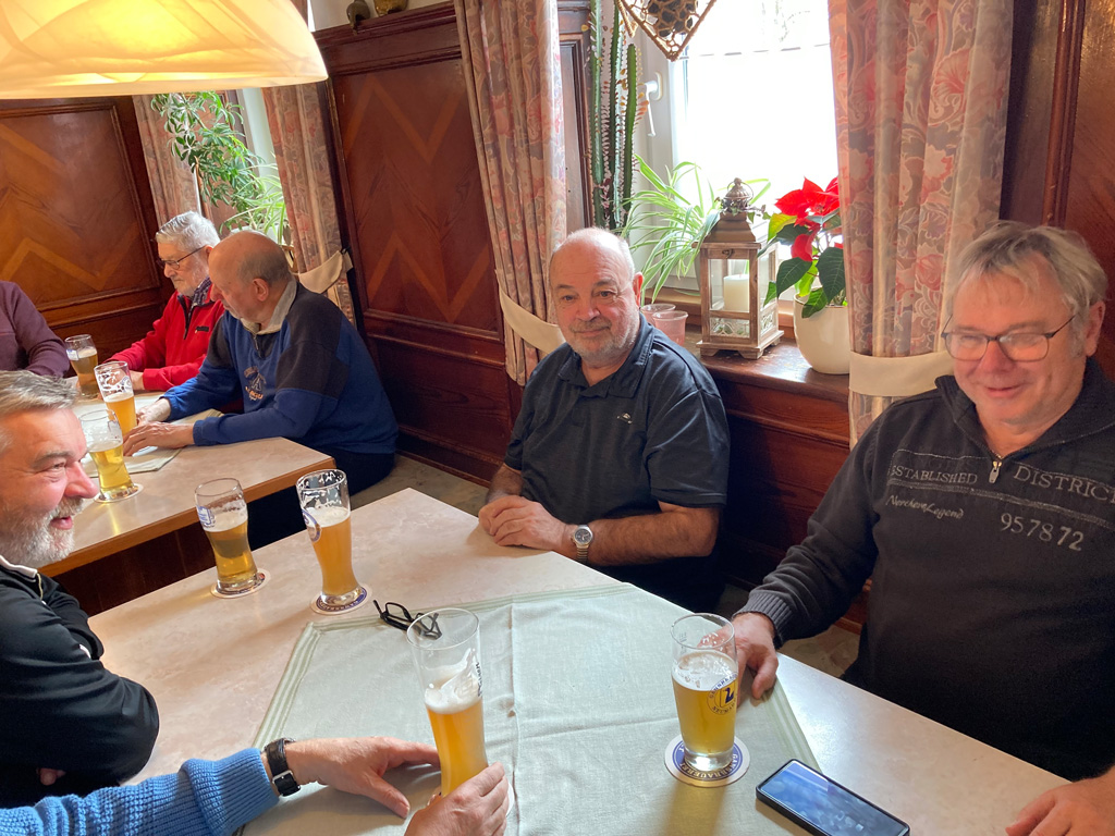 Fritz I. und Franz E. sprachen sich vorher ab, dass Fritz die Essenskosten vorstreckte. Nach dem Essen spendierte uns Agnes noch eine Runde Schnaps. Mit einem kräftigen Trullala bedankten wir uns bei ihr. So gegen 13:00 Uhr machten sich, gut gesättigt und zufrieden, so nach und nach alle wieder auf den Heimweg.